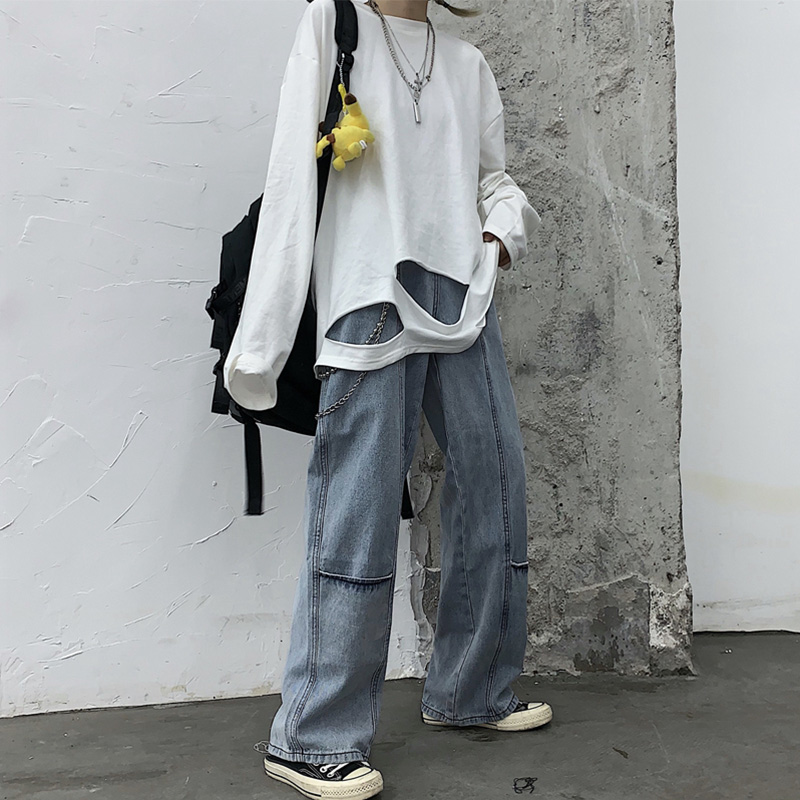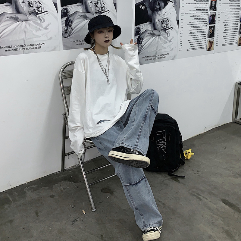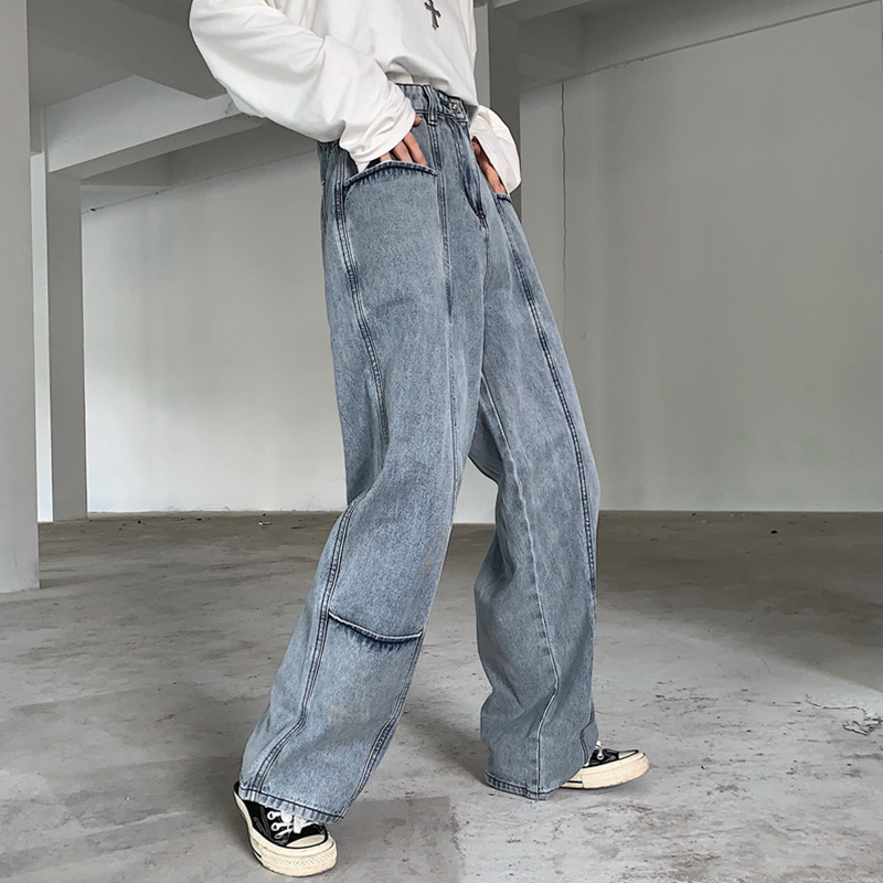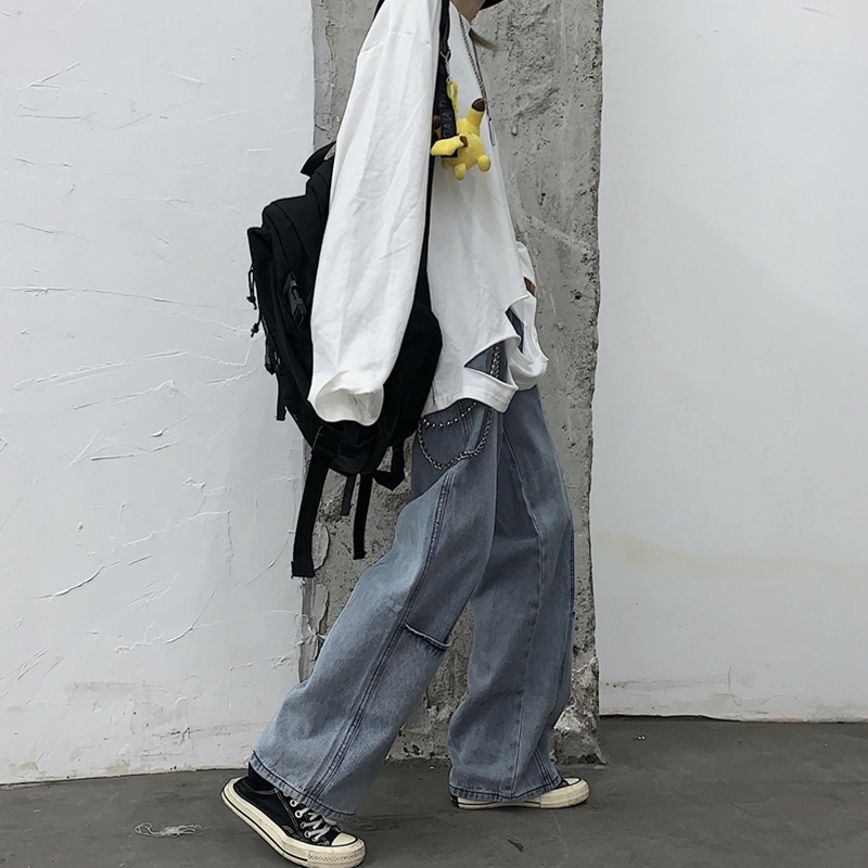 Large size women's clothing Old daddy pants 2022 New wave female Han version ins retro high waist jeans straight drum wide pants