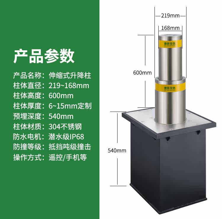 Fully automatic telescopic lifting column stainless steel anti-collision road pile hand-in-car pile semi-automatic chocoaster barricade facility