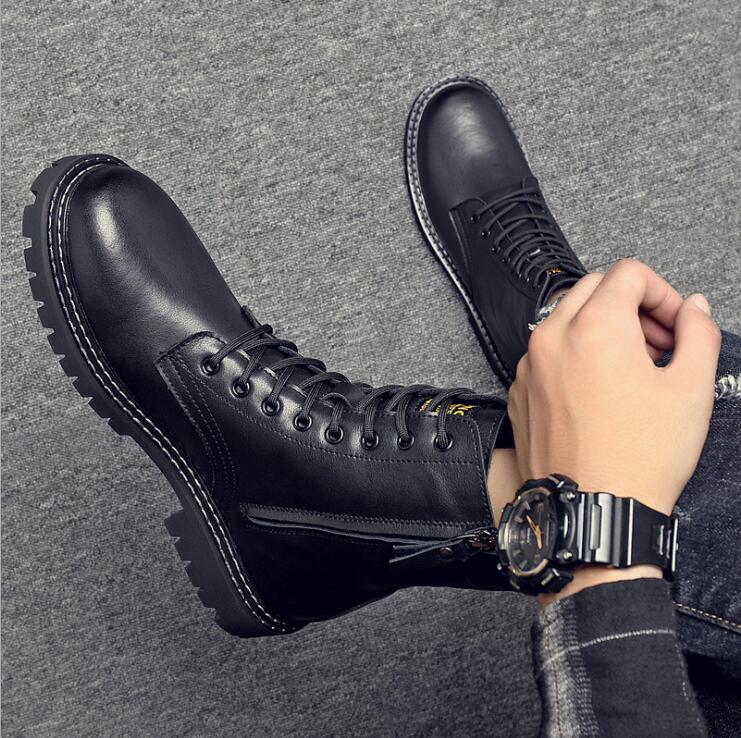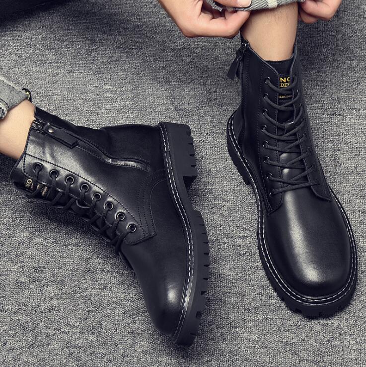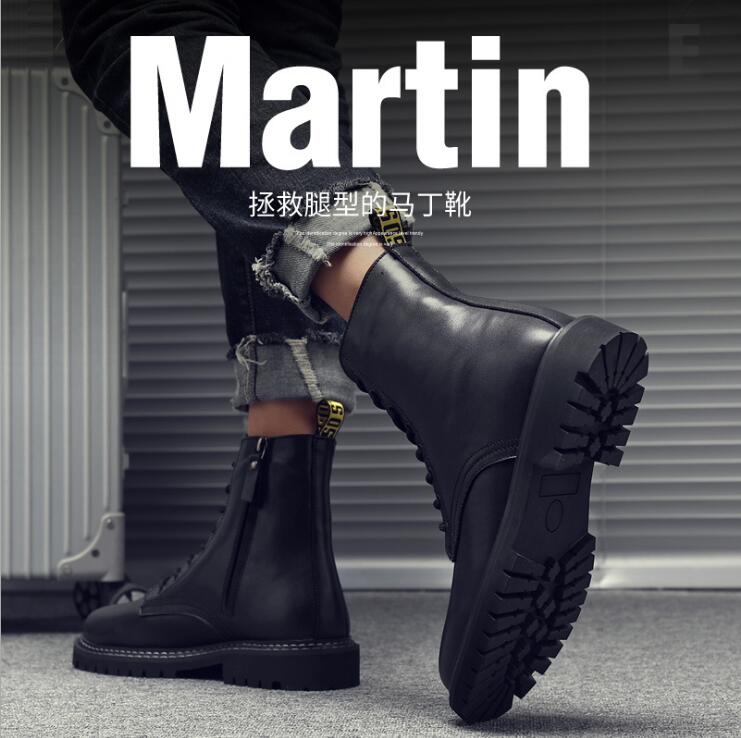 Lean Pig Martin Boots Men's Middle British Ferry Boots High-Weight Waterproof Boots Black Renaissance Boots in