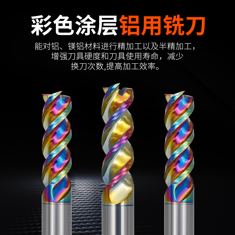 Imported high-efficiency color aluminum alloy milling cutter 3-blade tungsten steel flat-bottomed CNC CNC machining center cutter