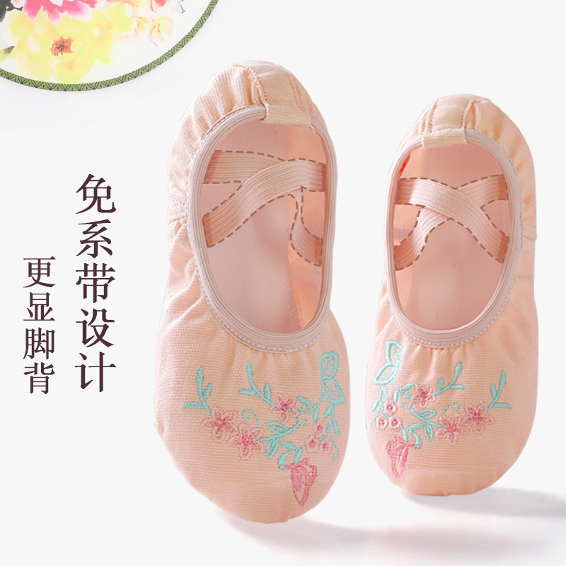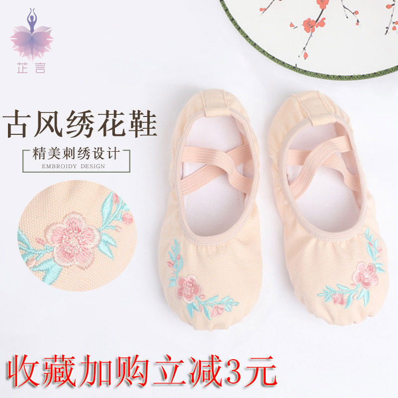 Children's dance shoes cloth toe shoes girls classical antiquity soft bottom exercise shoes children's lace-free embroidery shoes - Taobao