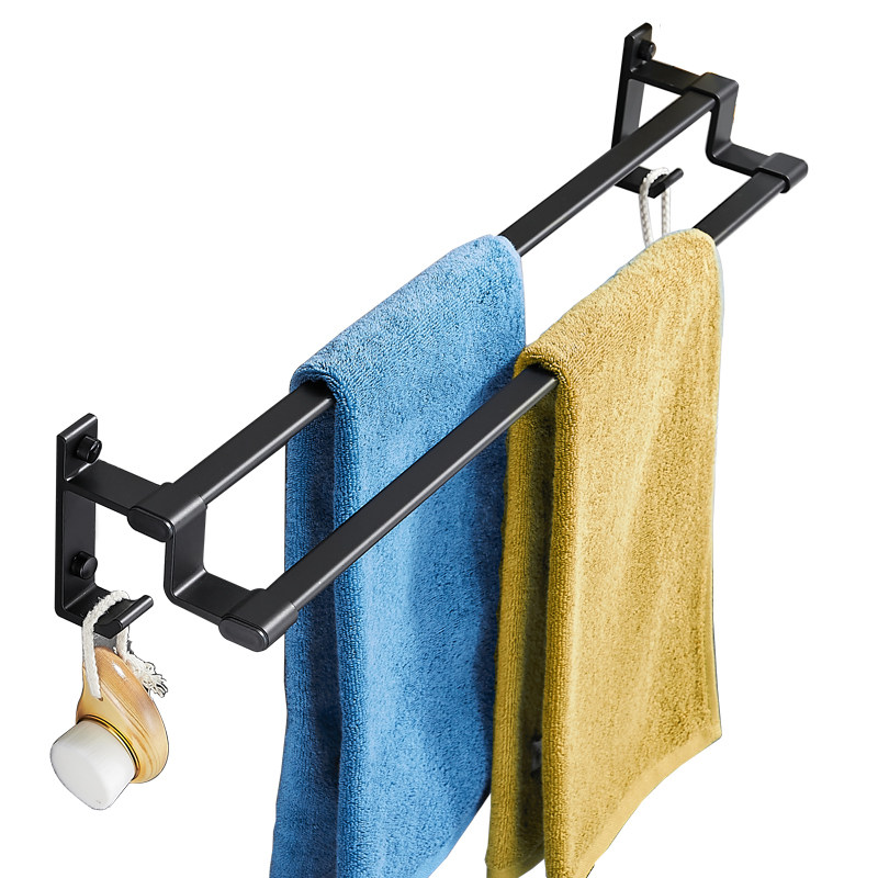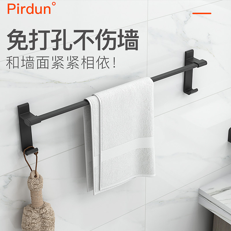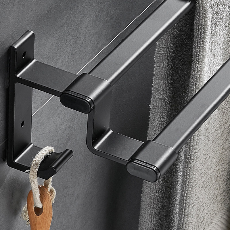 Black Nordic minimalist creative non-perforated bathroom space aluminum towel rack single pole balcony towel hanger bathroom