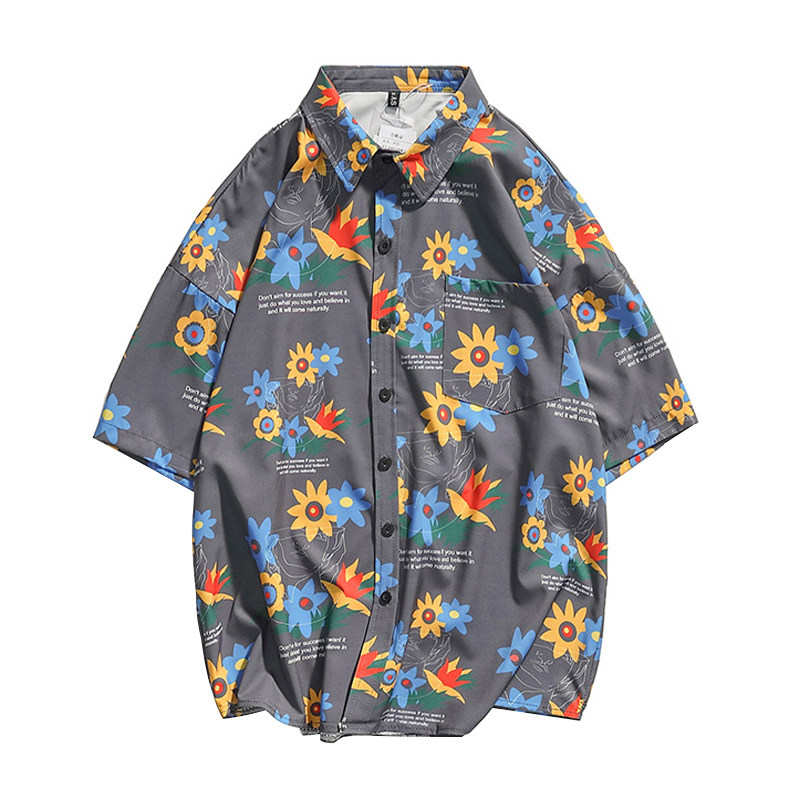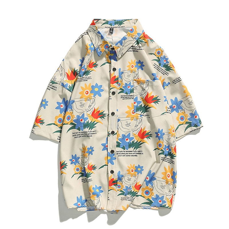 Ins tide brand Hong Kong style printed shirt women's new 2020 summer retro oversize loose short-sleeved shirt