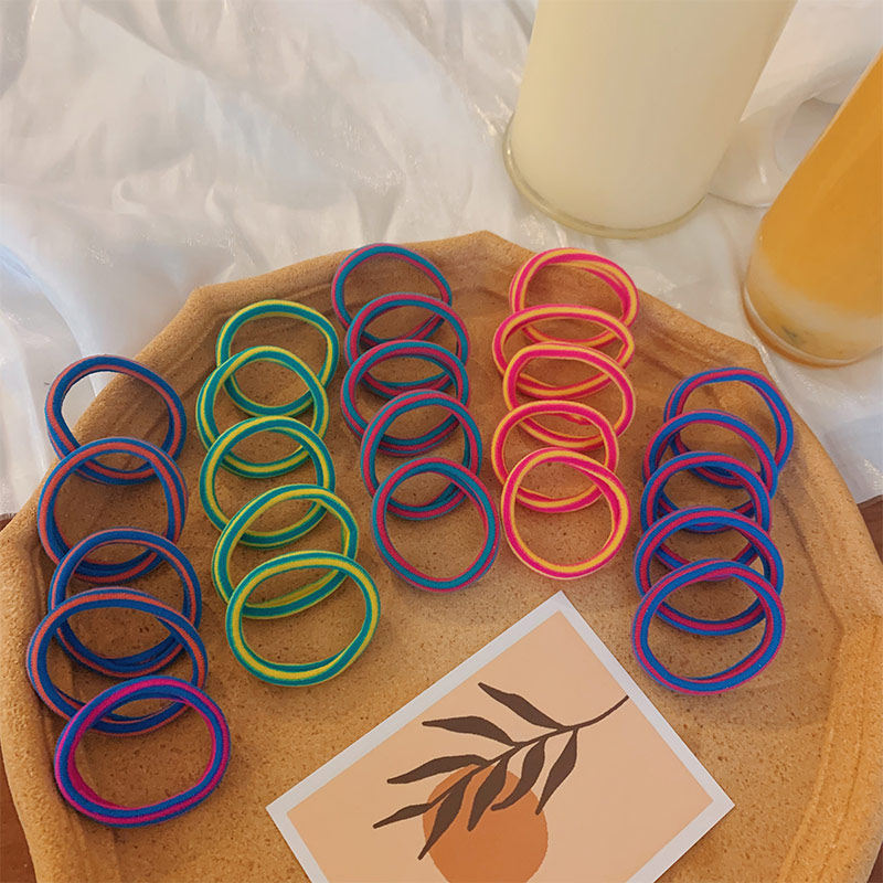 25 packs ~ weaving net red ins candy color basic rubber band simple girl hair circle head rope tie hair accessories set
