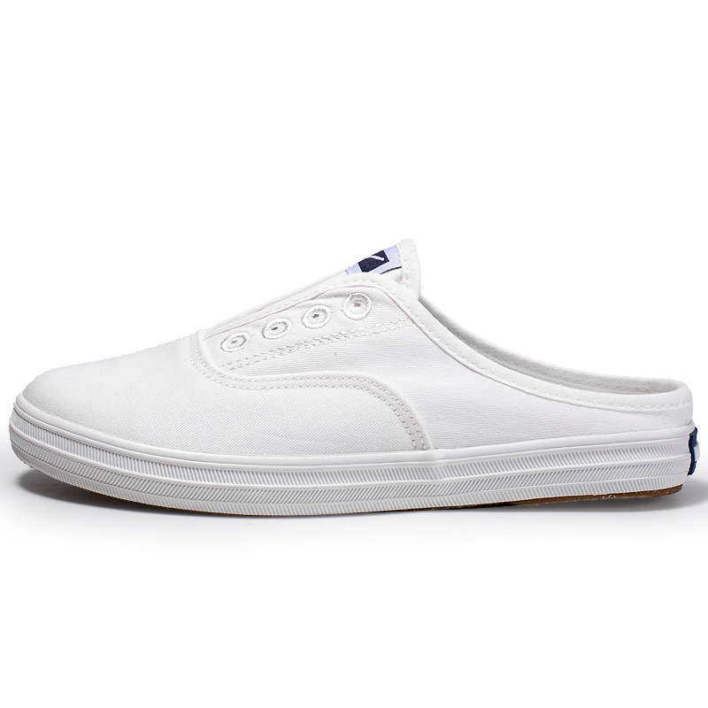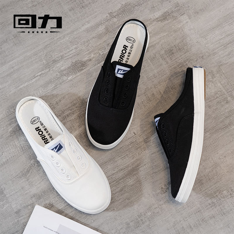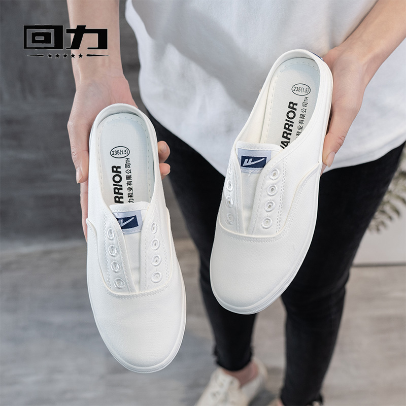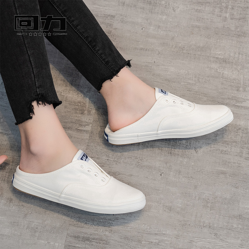 Back Force Semi-Trailed Canvas Shoes Woman 2021 Summer Little White Shoe Girl One foot pedal Lazy Shoes Original Girl Outside Wearing Slippers Single Shoes