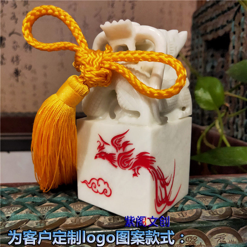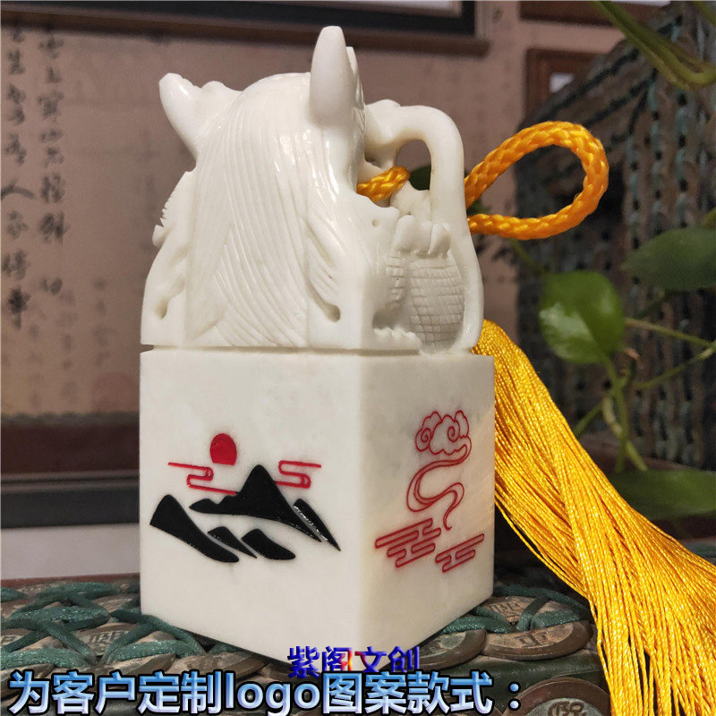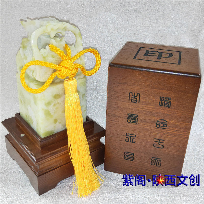 The 14th National Games of Xi'an Shaanxi Wen Creative Natural Lantian Jade Seal is engraved with the famous dragon head jade seal ornament
