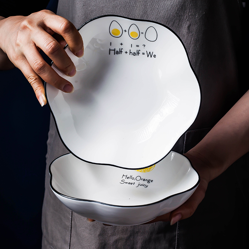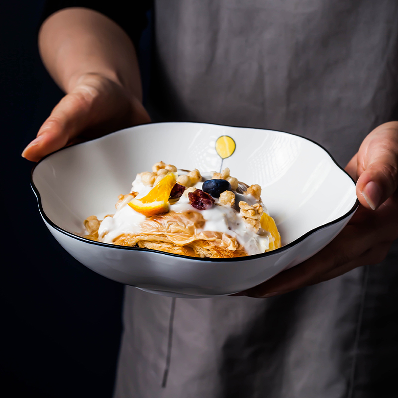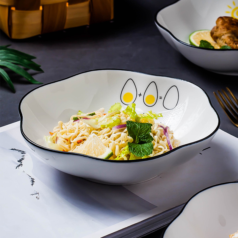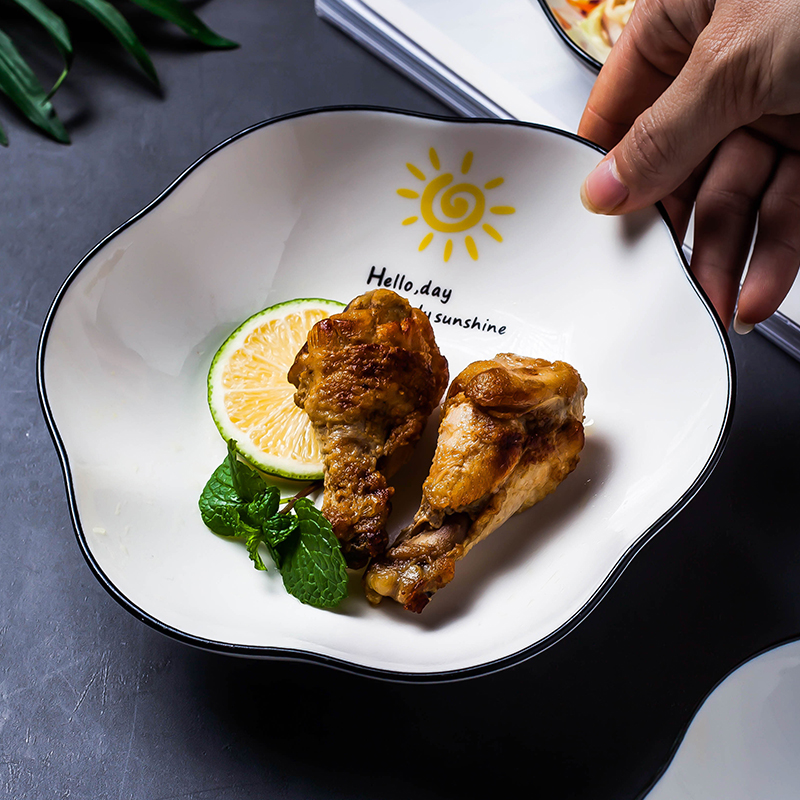 Nordic simple small fresh ceramic household tableware creative flower-shaped bowl 6 inch salad bowl fruit bowl rice bowl instant noodle bowl
