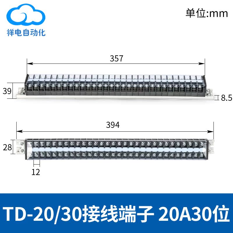 Zhengtai TD-2030 rail-type wiring end subtable 20A 30-bit combined copper wiring board wire connector