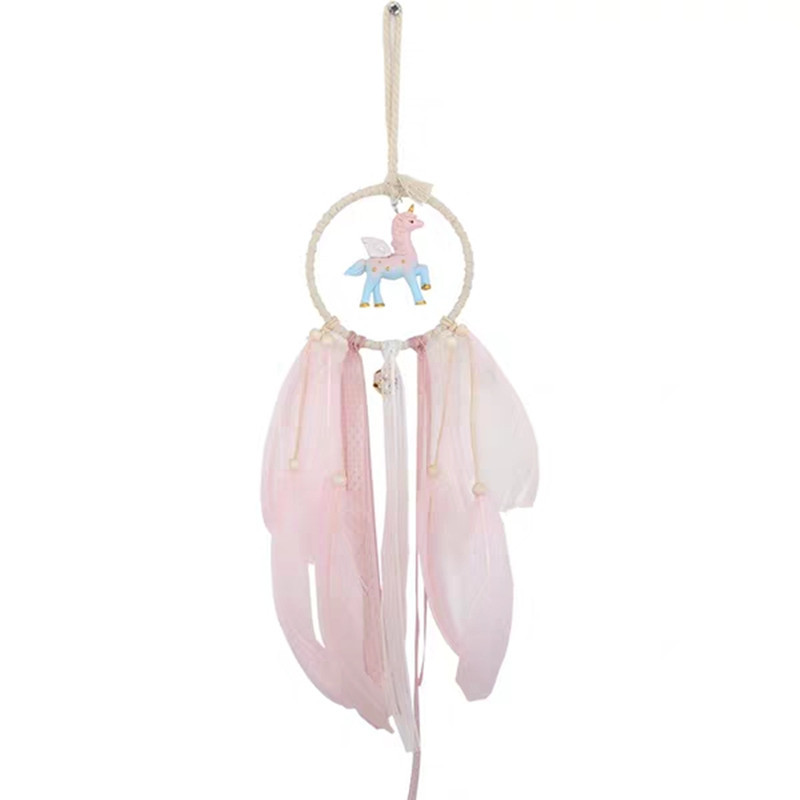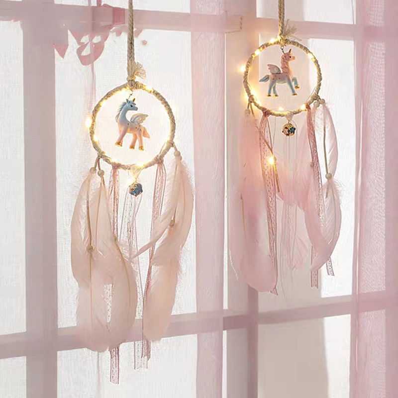 Cute unicorn feather dream catcher with light string DIY pendant wind chimes small fresh girl heart room decorations