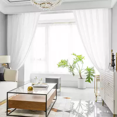 Curtain screen curtain translucent impermeable human screen bay window white yarn balcony yarn Simple living room semi-shading yarn curtain white fabric