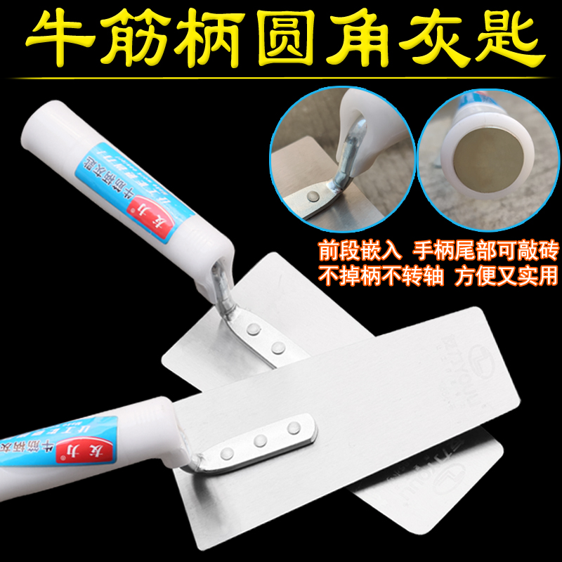 Solid core beef tendon handle ash spoon plaster knife thickened manganese steel trowel plaster plaster cement sand clay plate tile plaster knife