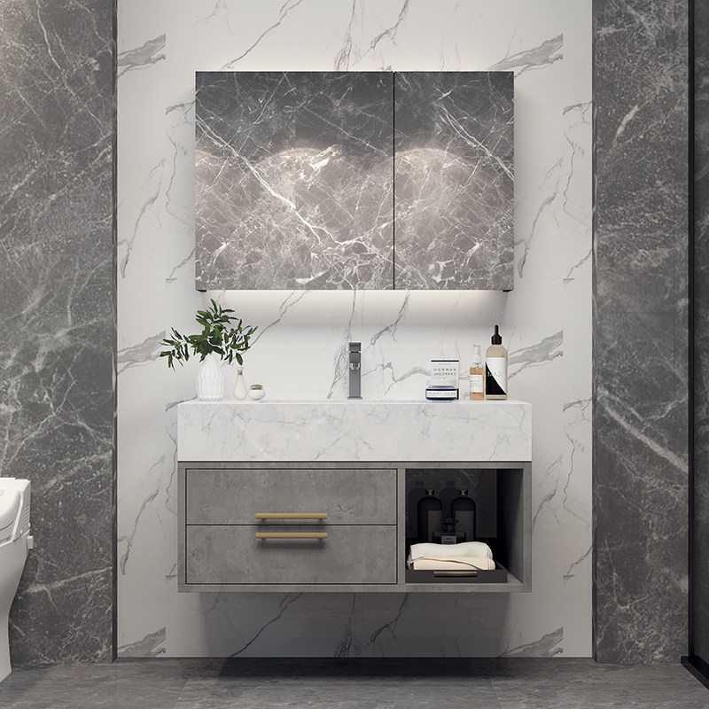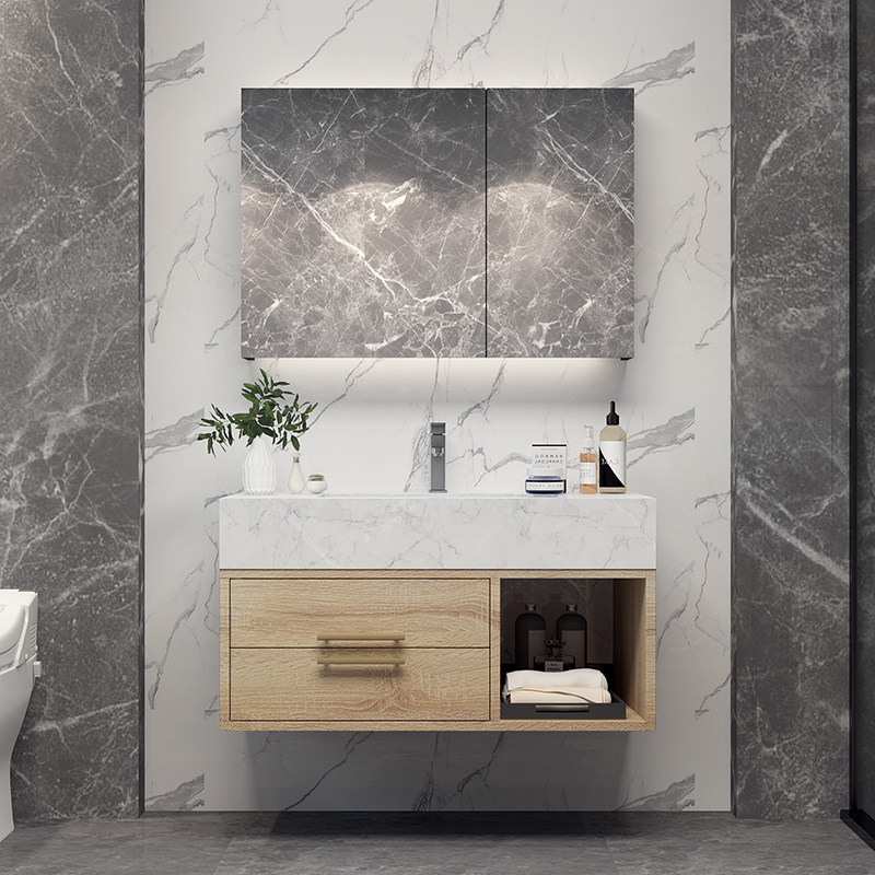 Nordic modern bathroom cabinet combination marble light luxury smart mirror cabinet bathroom washstand washbasin cabinet