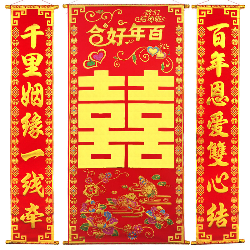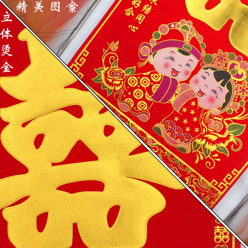 Wedding happy word in the hall of the living room hanging scroll wall hanging high-grade thickened flannel three-dimensional bronzing wedding wedding supplies