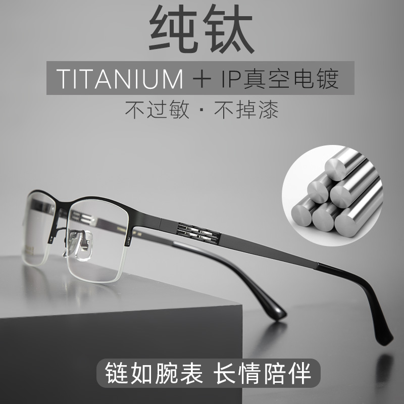 Pure titanium myopia spectacle frame men and women half-frame ultralight radiation-resistant Shu Adaptation frames finished eyes Anti-blue light astigmatism-Taobao