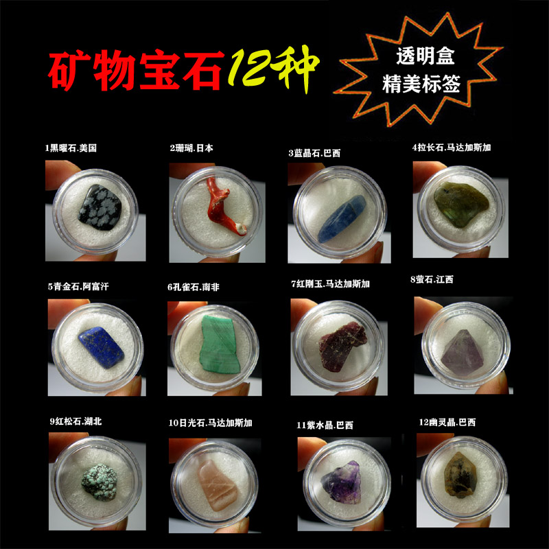 Mineral jewel specimens-Gems original stone Peubena 12 types of boxed-jewel suit-jewel gift