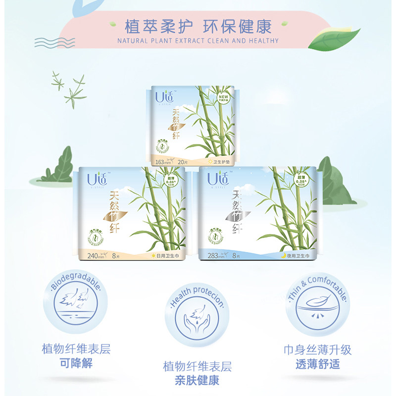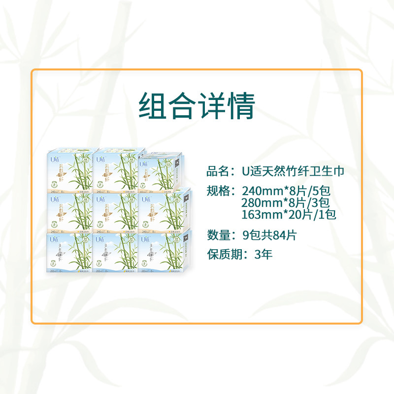Bamboo fiber sanitary napkin U suitable for day and night pad combination set full box 9 packs of 84 ultra-thin breathable anti-allergic