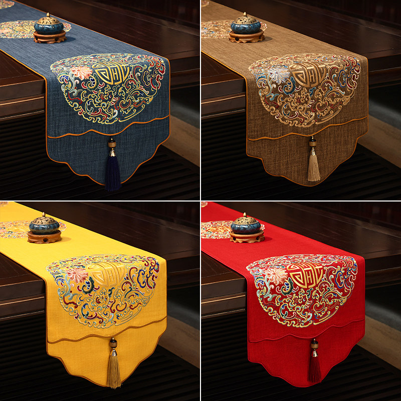 Chinese style table flag Chinese wind cotton linen embroidery tea table tea flag tea table cloth bed flag TV cabinet cover cloth strip table cloth-Taobao