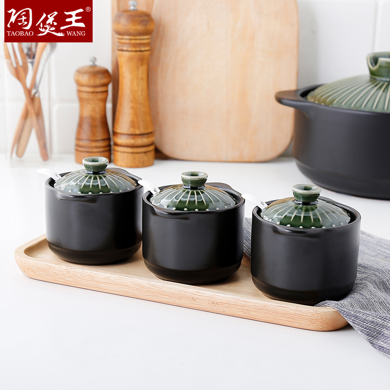 Clay Pot King Day Style Retro Burning Treasure Seasoned Jar Sauce Bottle Salt Jars Sugar MSG Seasoned Kit Home Suit Combination