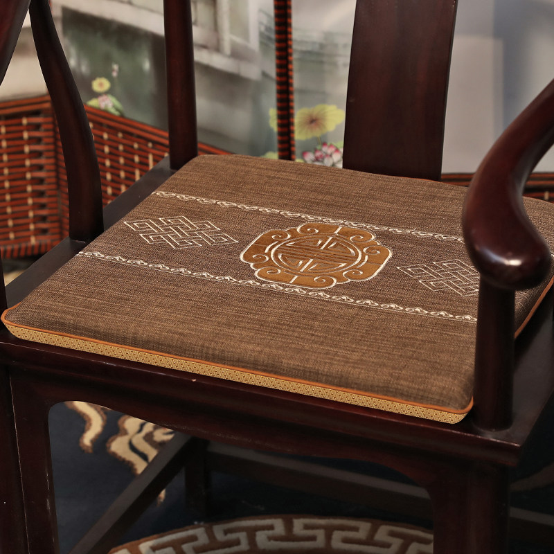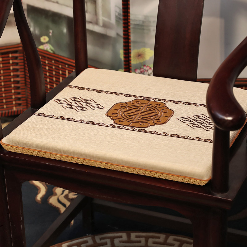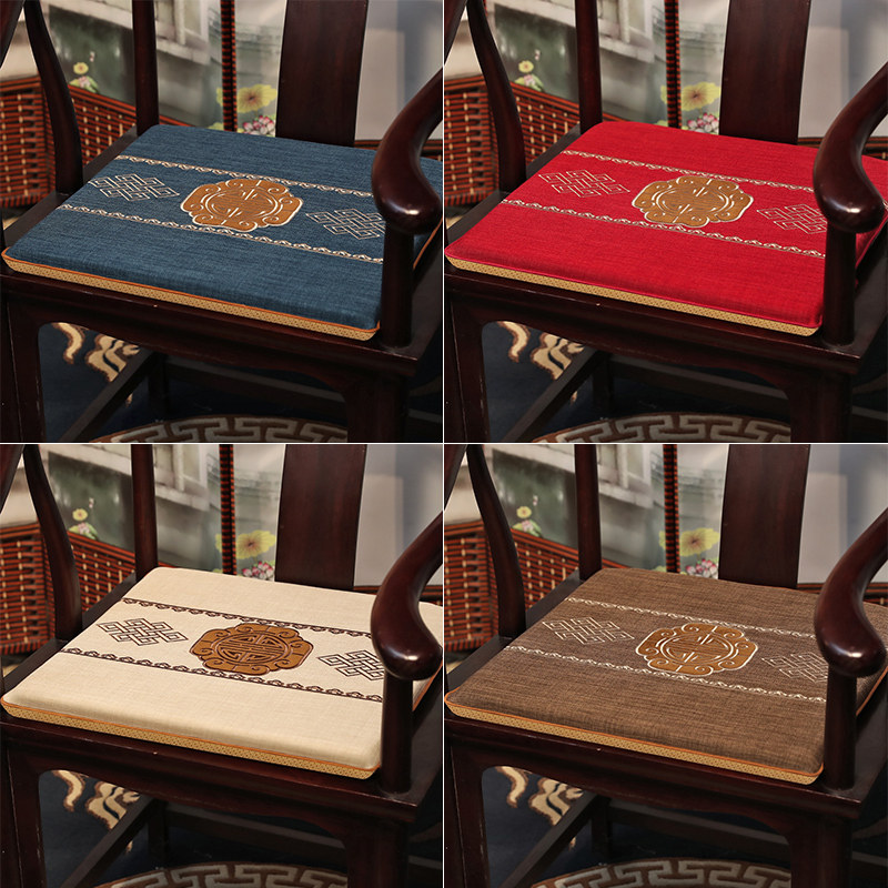 Chinese style chair cushion solid wood dining table dining chair circle chair cushion tea chair cotton linen red wood sofa chair cushion custom-made-Taobao