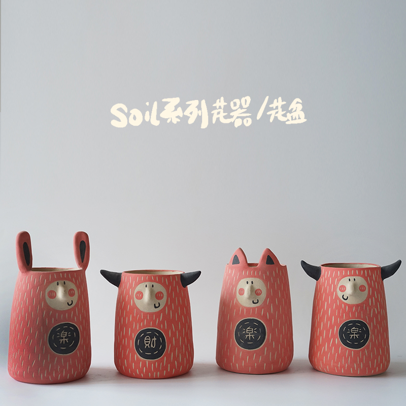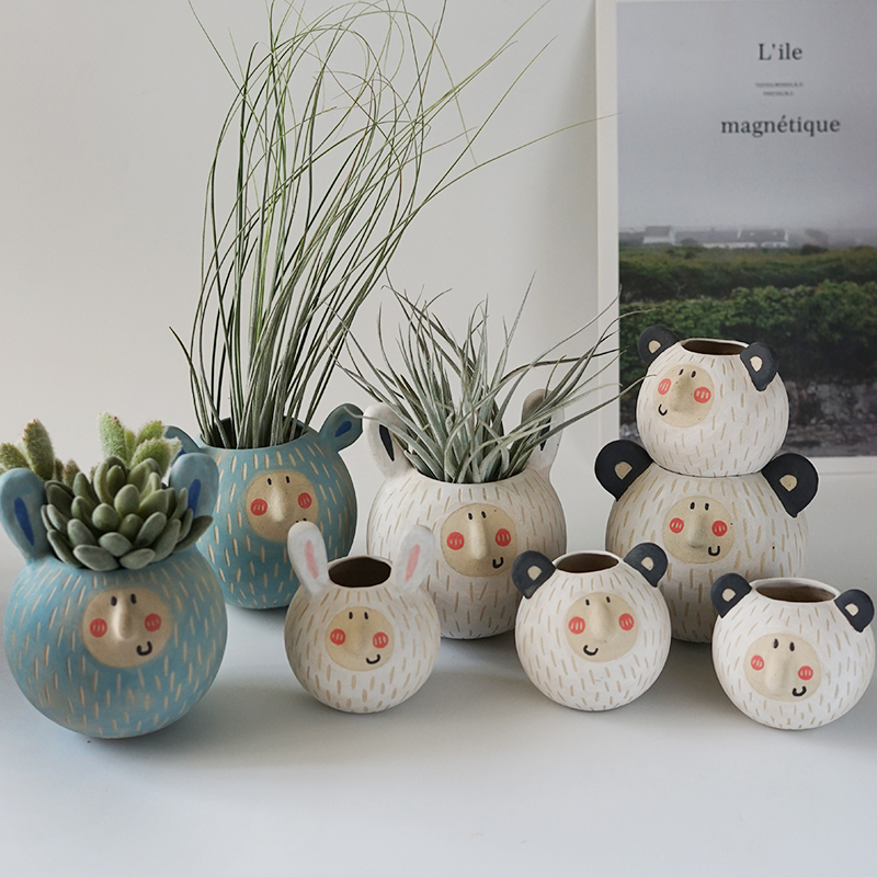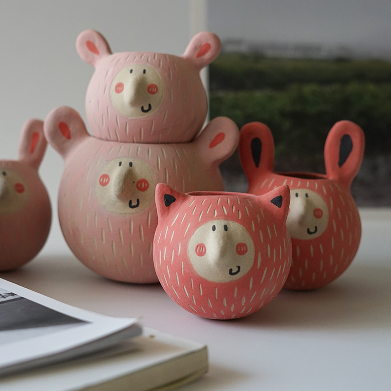 Home decoration cute personality Japanese handmade original design small companion gift housewarming wedding ceramic flowerpot vase