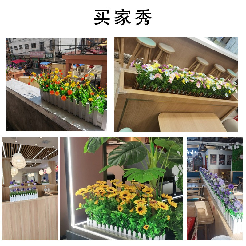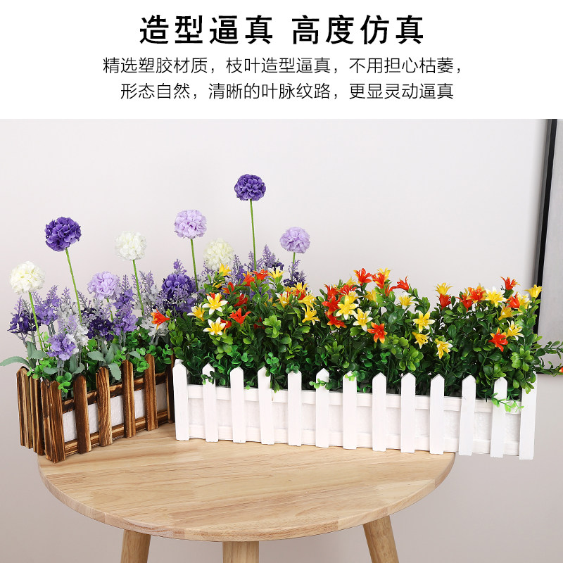 50cm white fence mixed color lavender ball 50cm white fence mixed color water grass chrysanthemum 50cm white fence red and white lily of the valley 50cm white fence orange yellow sun chrysanthemum 50cm