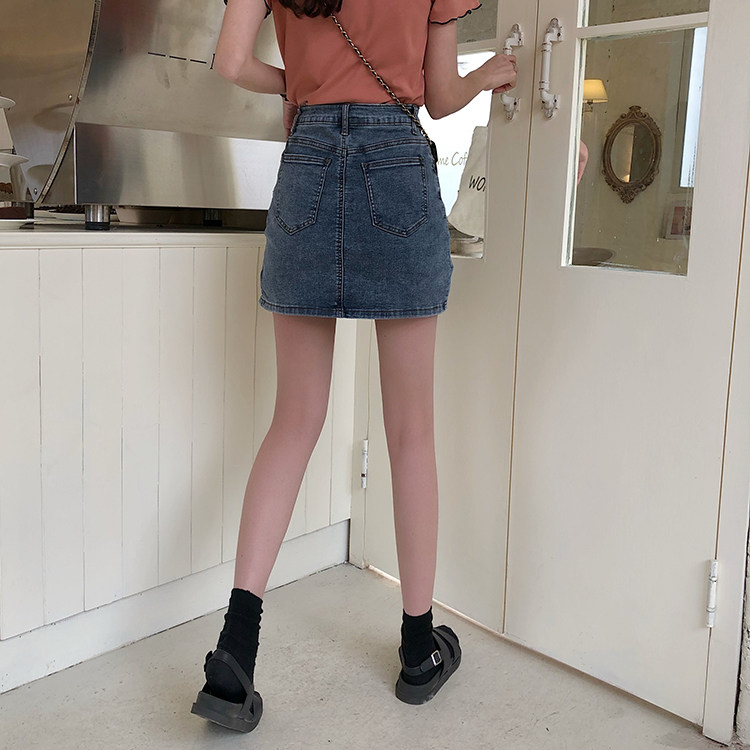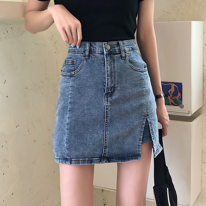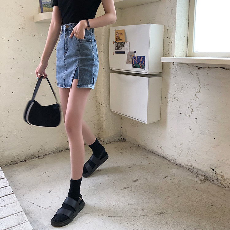 South Korea East gate 2020 Summer new thin section High waist side open fork bag Hip Jeans Short Skirt Pants A half body dress