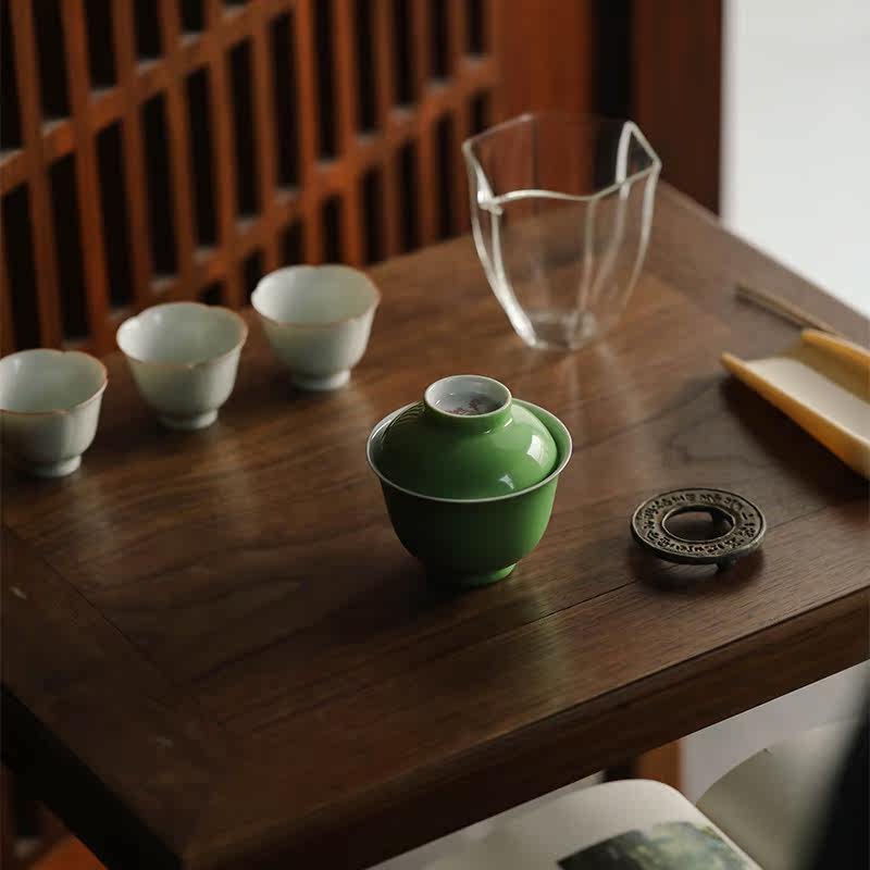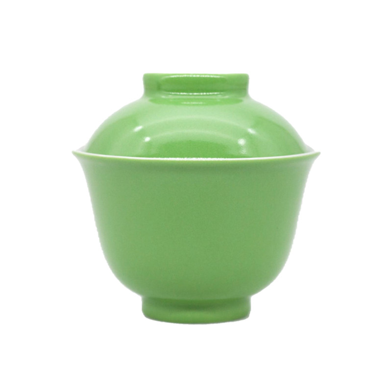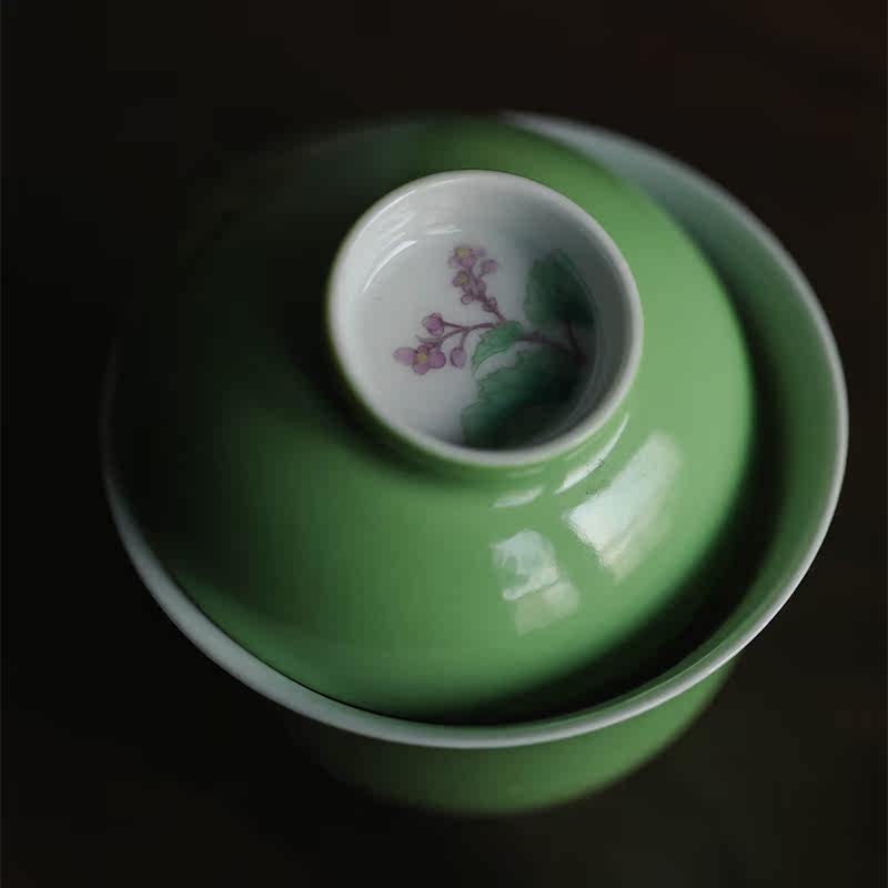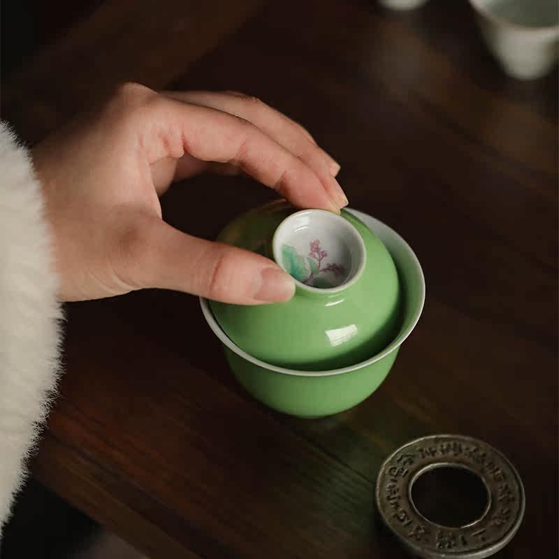 (Leisure and fast living) endowed Mountain Hall Green glaze pink sea-tang Wensee Artisanal Cover Bowl single Jingdezhen Ceramic tea set