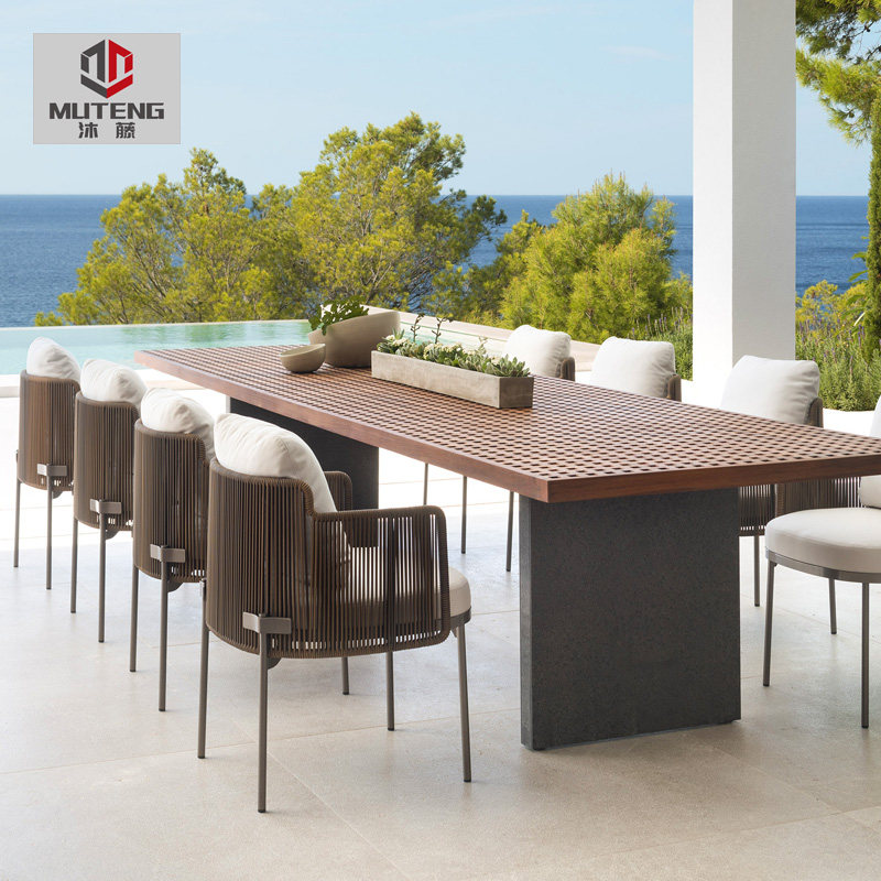 Outdoor leisure courtyard table and chair rattan rattan chair Nordic garden waterproof outdoor balcony chair solid wood table combination
