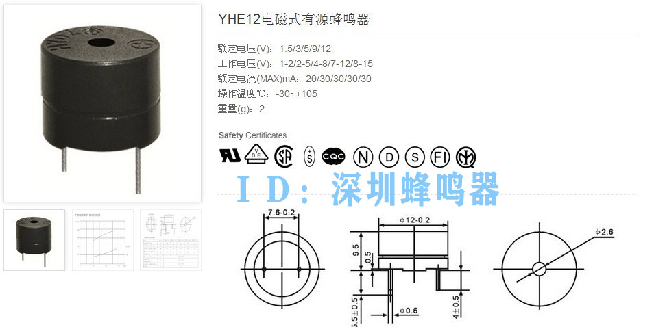 YHE12-05 Electromagnetic active DC buzzer 12085 two-piece sot plastic tube buzzer two-piece