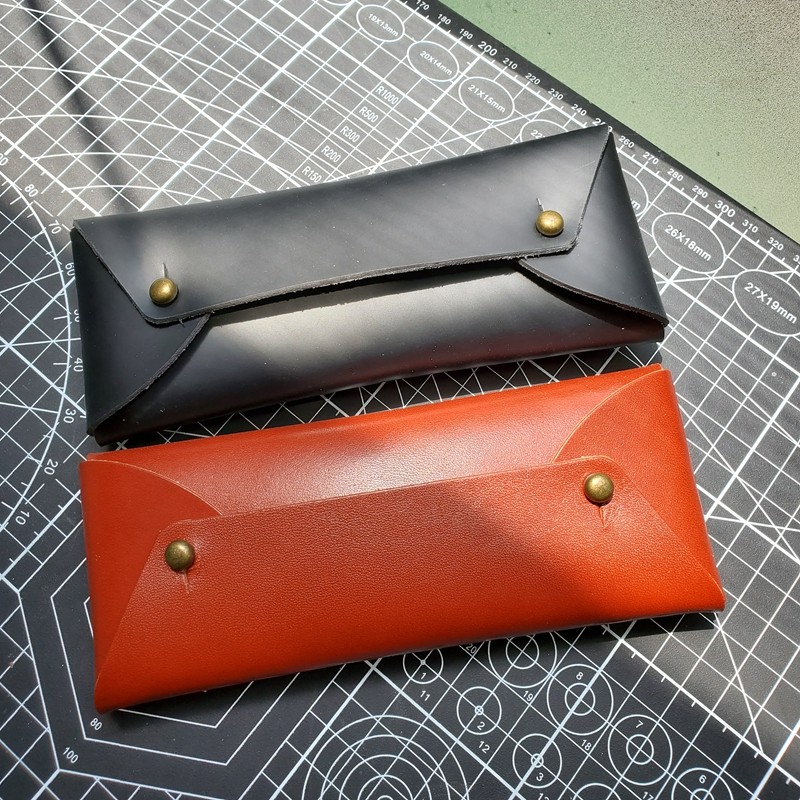 Leather case pen case glasses bag Vegetable Tanned Leather Head Layer Cow Leather cutter containing American retro handmade Ame click