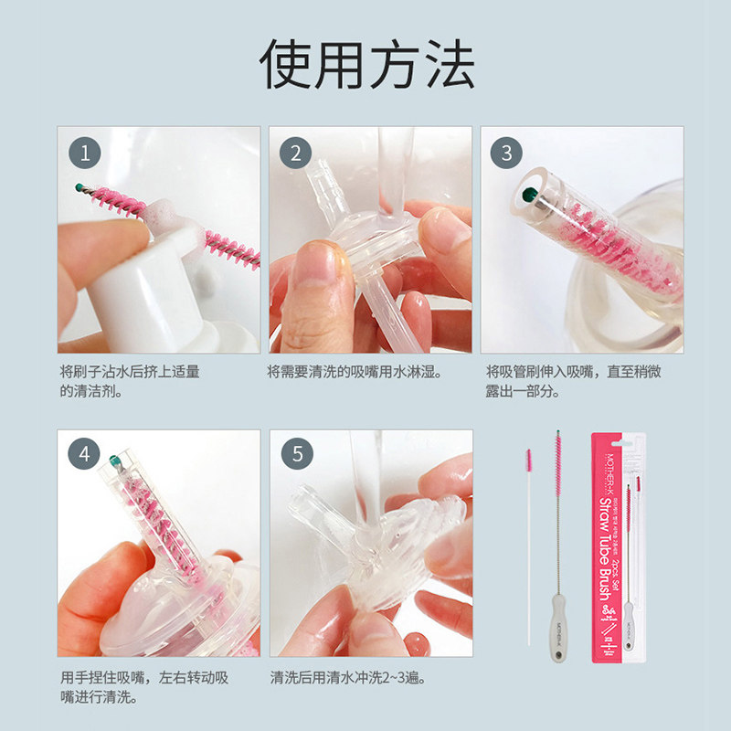 South Korea imported Mother-K baby bottle straw brush slender motherk multi-function straw cleaning brush