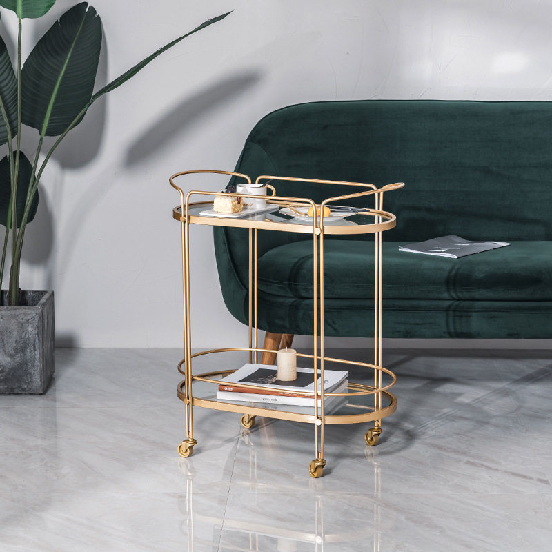 Nordic Sweet Shop Cafe Outdoor Table Golden Dining Car Milk Tea Shop Western Restaurant Hand Push Tea Table Hotel Move