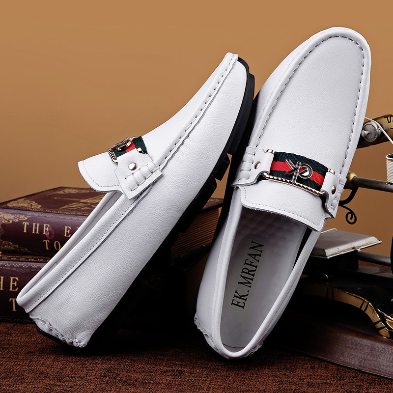 Doudou shoes 2022 new men's leather autumn slip-on white full leather business casual Korean style trendy leather shoes