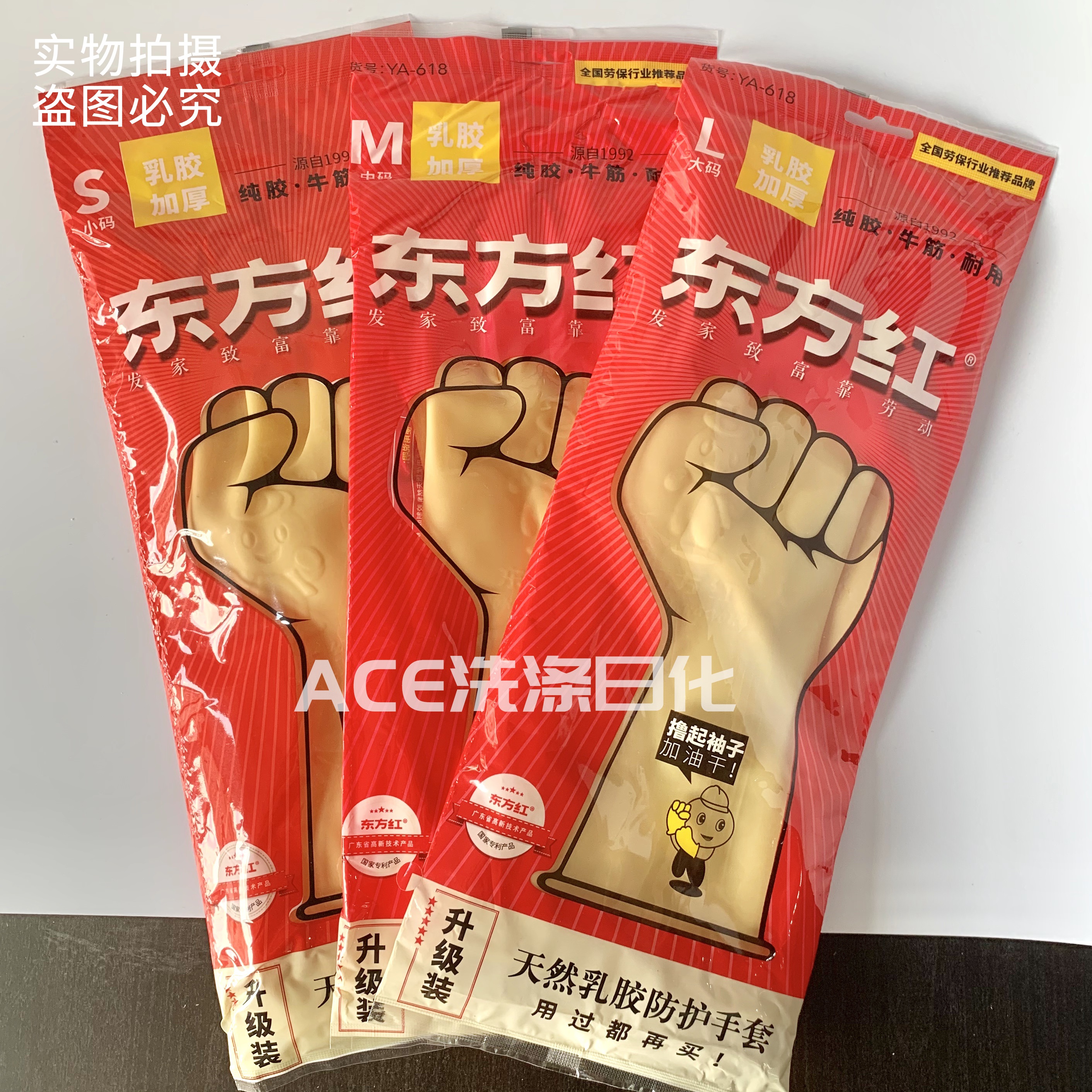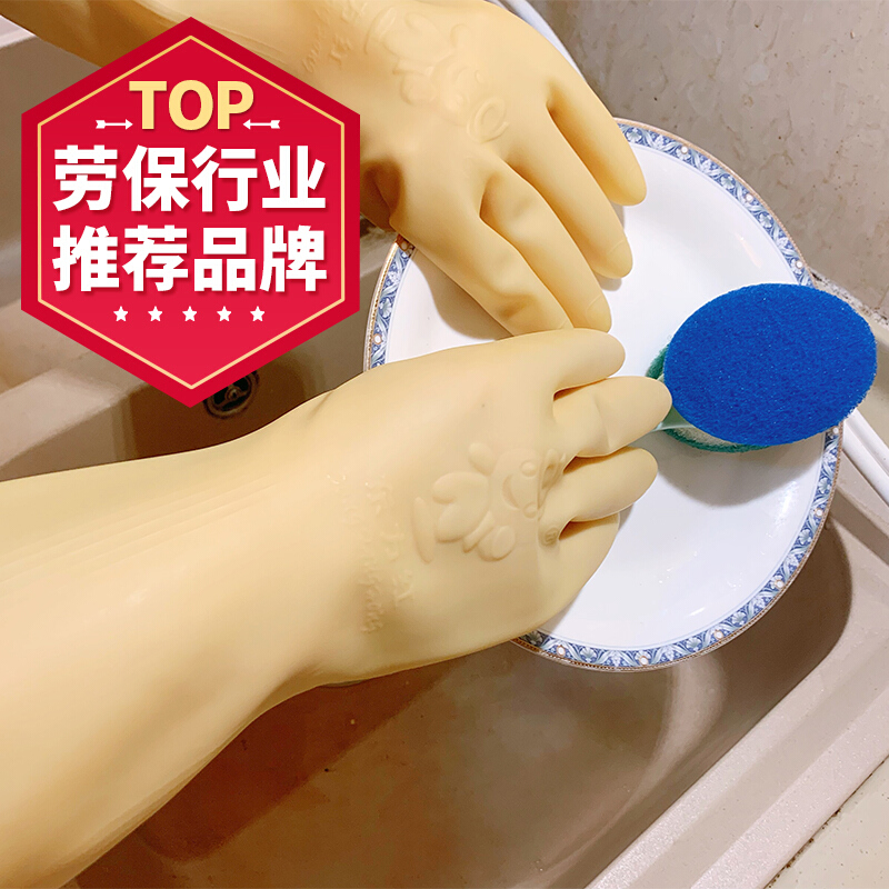Oriental red rubber gloves thickened abrasion resistant cow gluten latex rubber dishwashing cleaning laude waterproof gloves