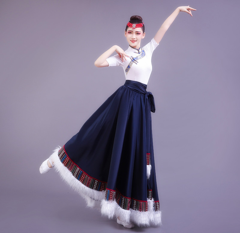 Tibetan dance practice skirt Tibetan clothing skirt ethnic style square dance performance clothing female practice training skirt