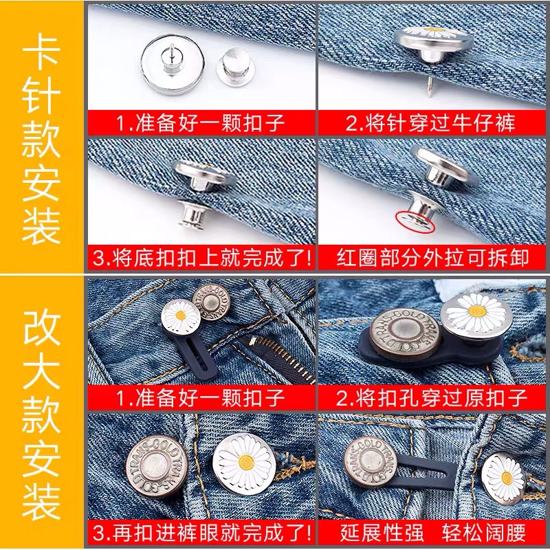 Little daisy jeans button detachable button adjustable vibrating waist circumference big change small nail-free artifact all-match