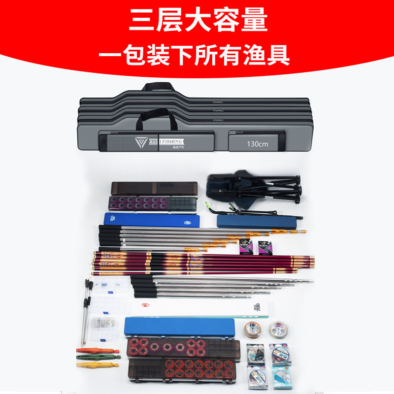 Fishing skills fishing rod bag fishing tackle bag waterproof multi-function fish bag three-layer big belly fishing bag storage fish tackle bag fishing rod bag