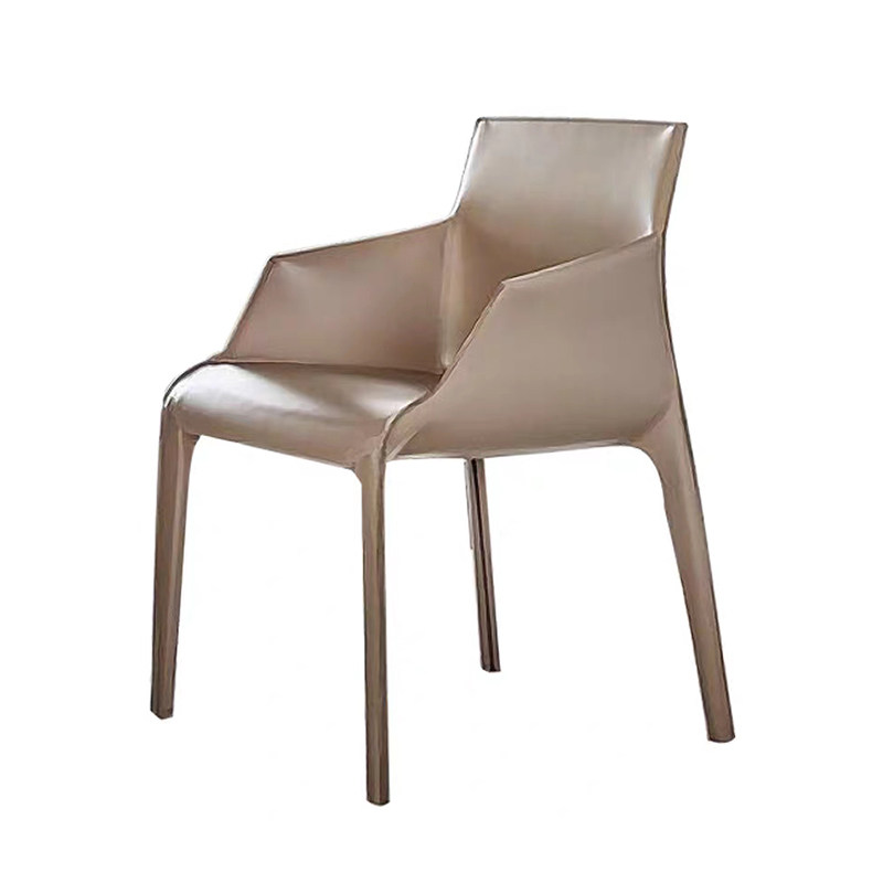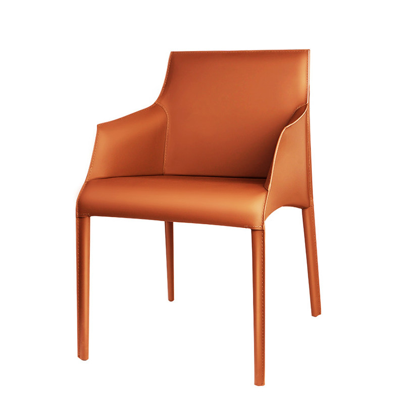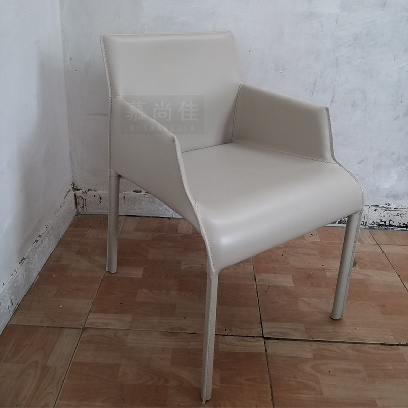 Nordic light luxury high-end home dining chair modern minimalist backrest armchair hotel leather leisure chair net red seat