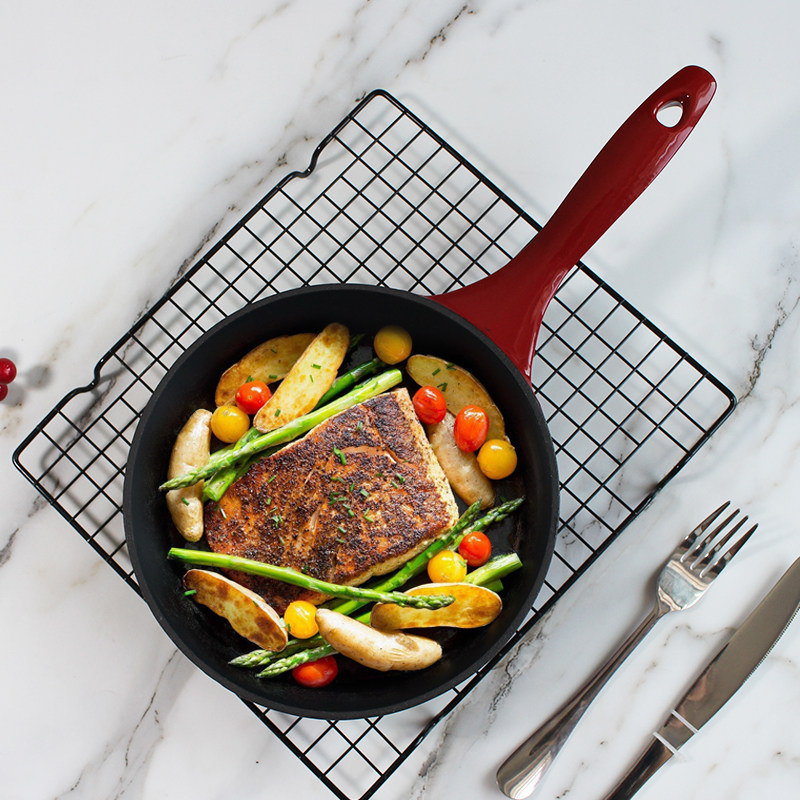 Green inner black 20 iron frying pan Red inner black 20 iron frying pan
