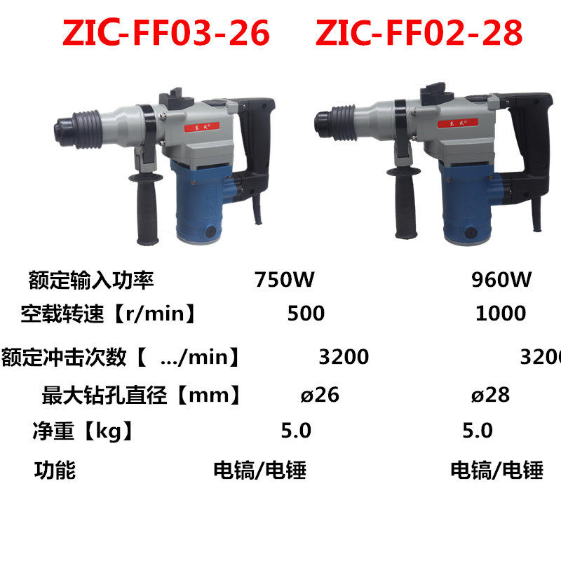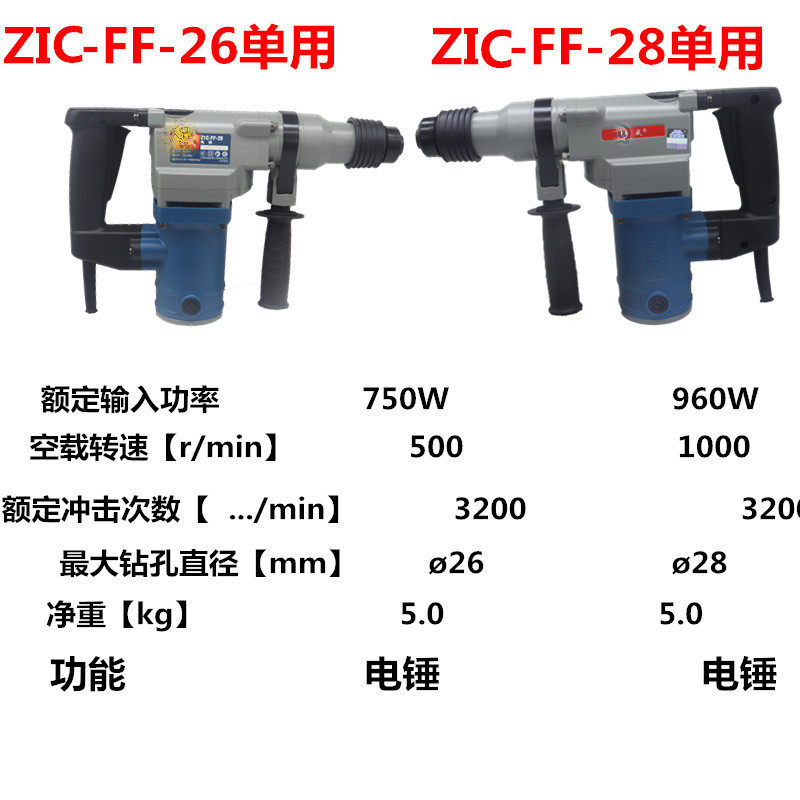 FF-26 single-use electric hammer (750W) standard FF-26 single-use electric hammer (750W) gift FF03-26 dual-use electric hammer drill (750W) standard FF03-2