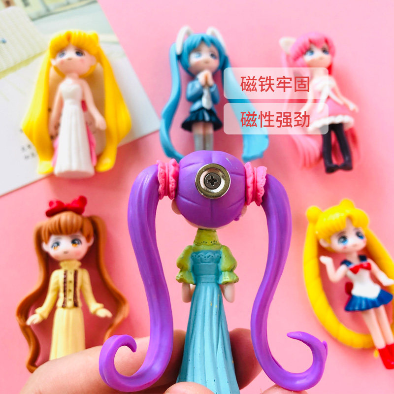 Cartoon cute animation beauty girl warrior stereo refrigerator magnetic sticker decoration magnetic tape message Sticker Sticker