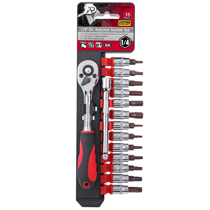 15 piece set 1 4 (4-14mm socket + quick wrench + adapter)