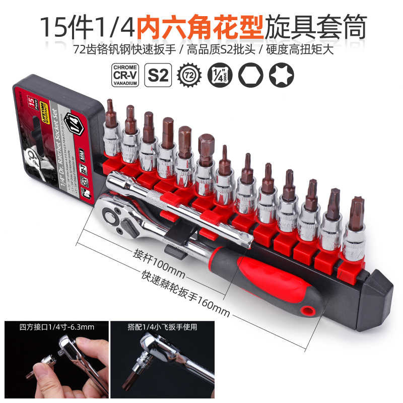 15 piece set 1 4 (hexagon + plum blossom + quick wrench + adapter + cardan)