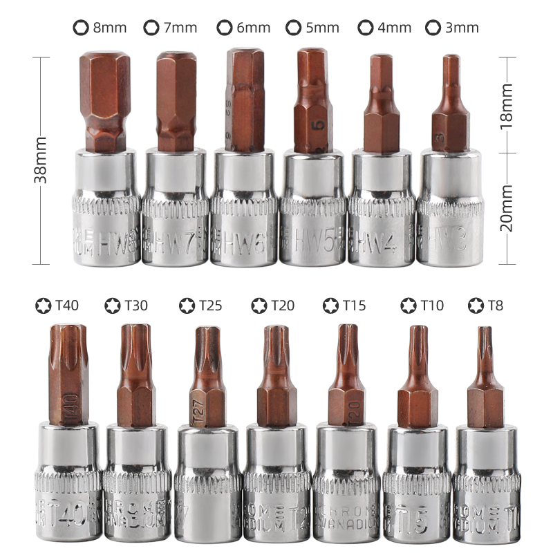 Hex socket small fly spline set batch head sleeve t30t40 plum wrench tool screw sleeve set