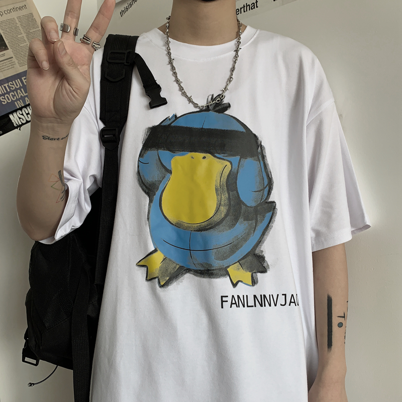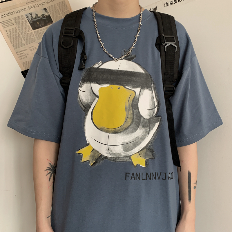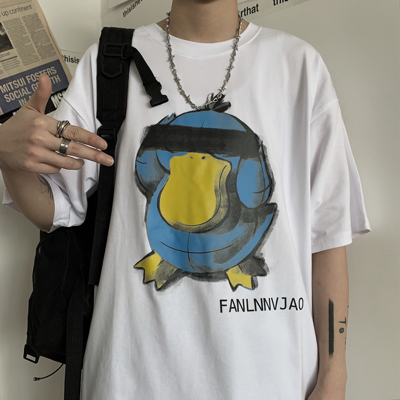 INSstudios Summer Trends Ins Korean version retro handpainted cartoon Ducks Loose short sleeves T-shirts Men and women