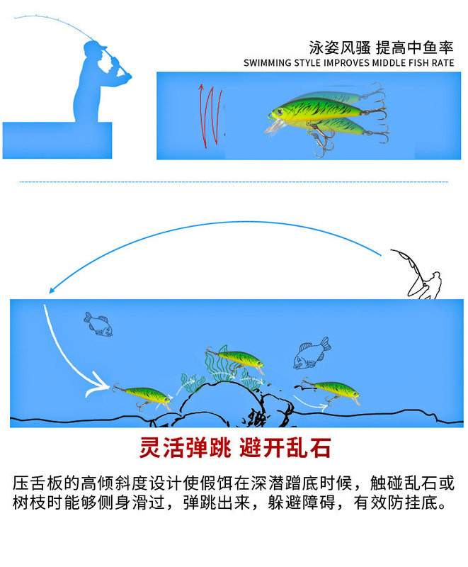 Luia micro-materialwater small mino 6 gr Yuan throw mini mino false bait Mouth teething red greens slightly bass
