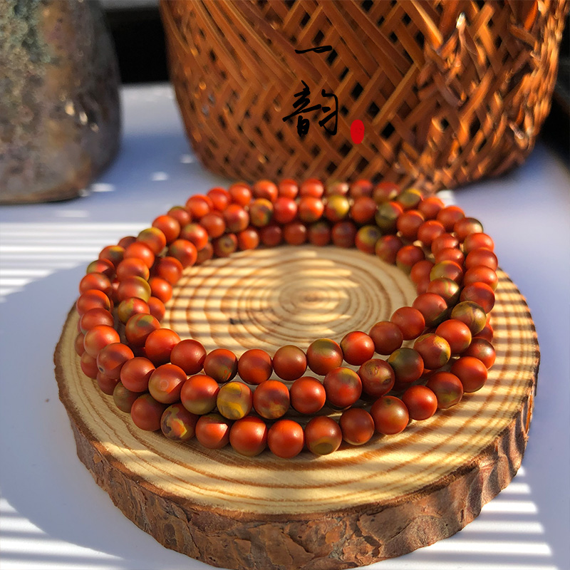 Cool Mountain South Red Manau old Type 108 Yellow green flower leather bag Tomato Gin red hand-string long chain Multi-ring male and female accessories-Taobao