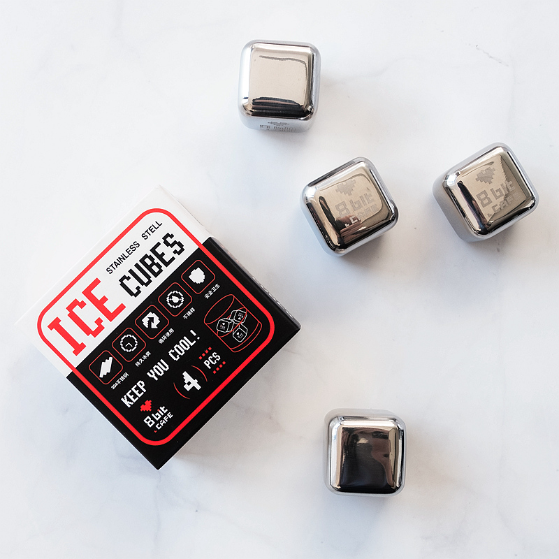COLD BREW 8 Bit Stainless Steel Ice Cube Hand Pour Ice Drop Cold Brew Cold Brew Coffee Metal Ice Stone 4 Pieces