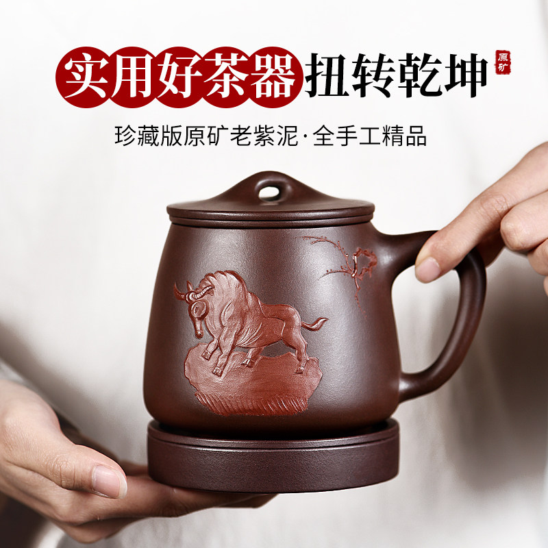 Yixing purple sand cup men's handmade boutique raw ore large-capacity tea and water separation office household stone scoop tea cup