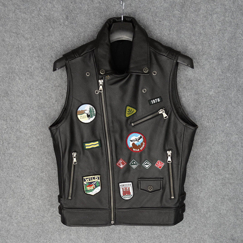 Only 30 pieces of new Pakistani top-layer cowhide leather jackets with multi-standard motorcycle vests for men and women couples